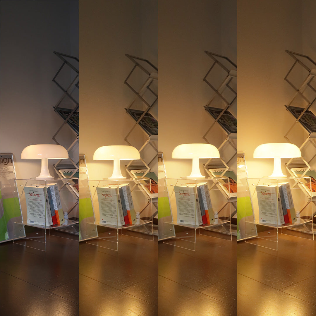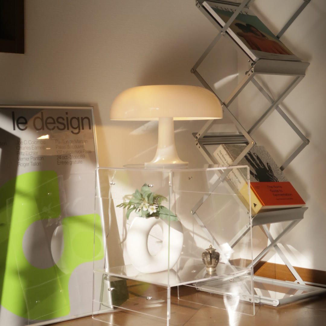 アクリル製のかさから漏れる透明感のある明かりが作り出す洗練された空間。